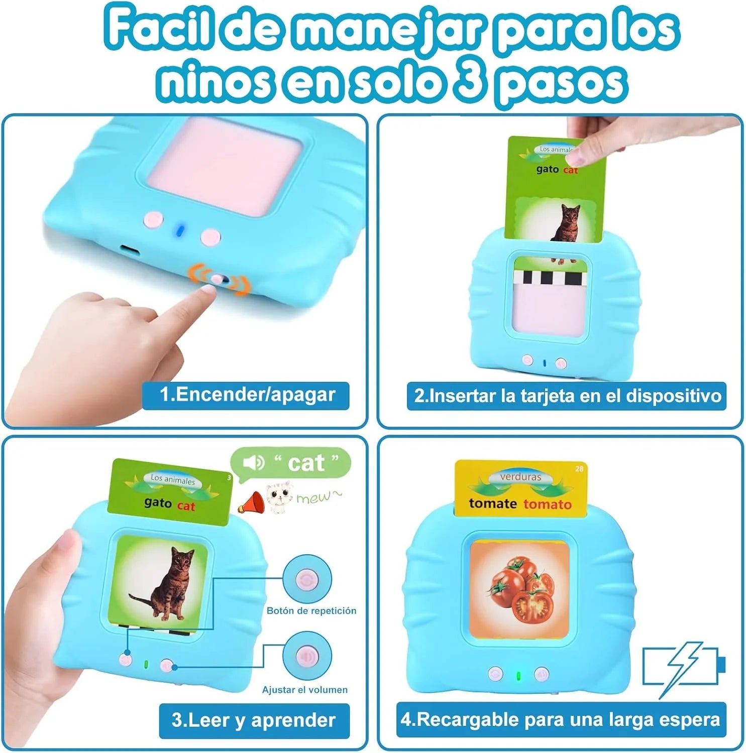 SmartCards Kids™ es el lector de tarjetas bilingüe que transforma el aprendizaje en un juego.